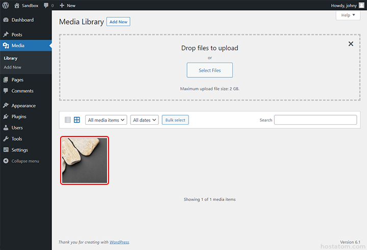 ระบบจะแสดงไฟล์ที่ได้อัปโหลดขึ้นไปยัง media library ดังภาพตัวอย่าง