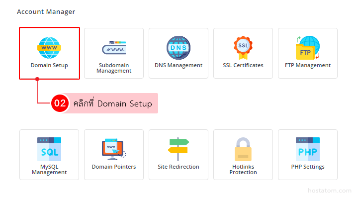 1. ระบบจะเข้าสู่หน้าหลักของ DirectAdmin ที่ Account Manager คลิกที่ Domain Setup