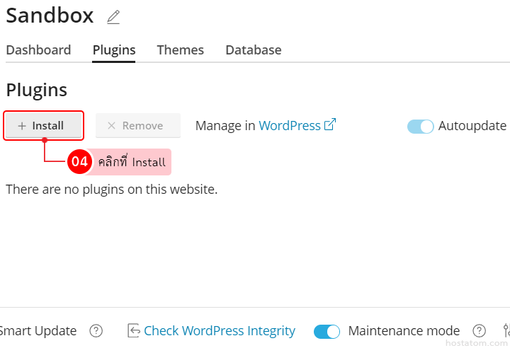 ใน WordPress Toolkit ผู้ใช้สามารถติดตั้งปลั๊กอินได้ตามขั้นตอนต่อไปนี้