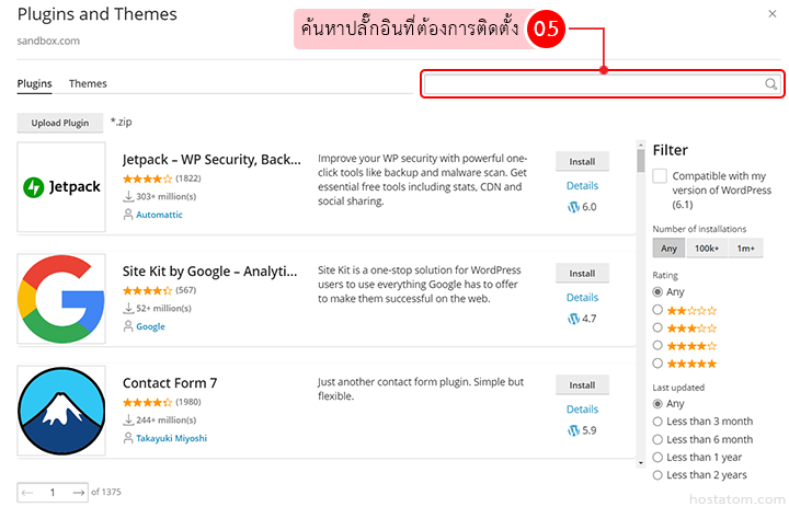 ค้นหาปลั๊กอินที่ต้องการติดตั้งในช่องค้นหา