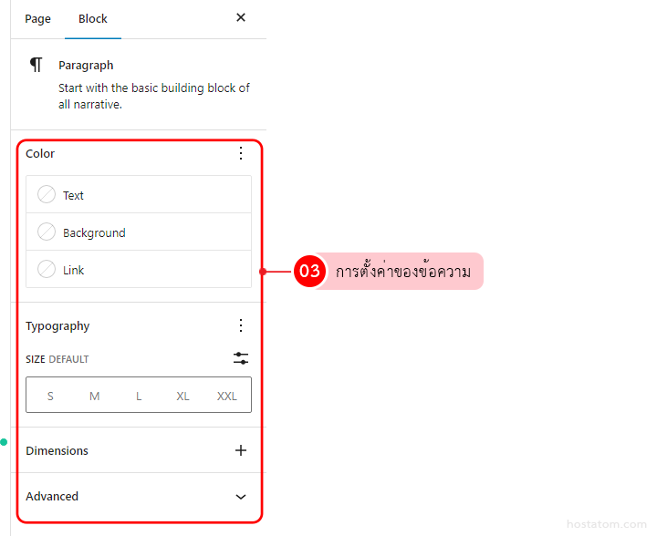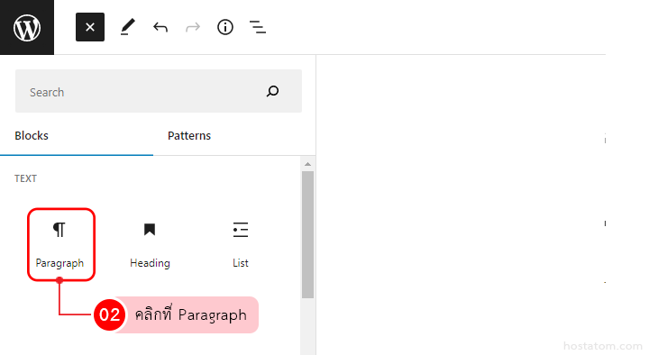 ที่ Tab Blocks จากนั้นเลือก Paragraph