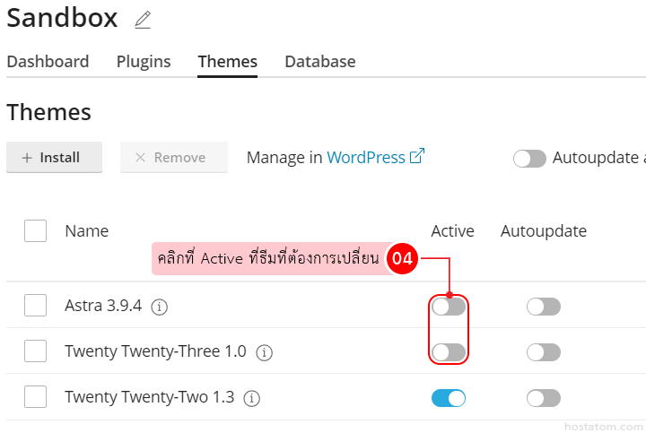 คลิกที่ Active ที่ธีมที่ต้องการเปลี่ยน