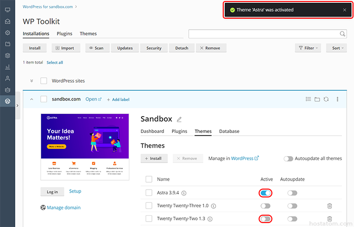 วิธีเปลี่ยนธีมผ่าน WordPress Toolkit ใน Plesk