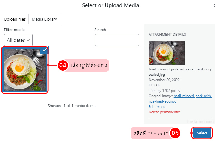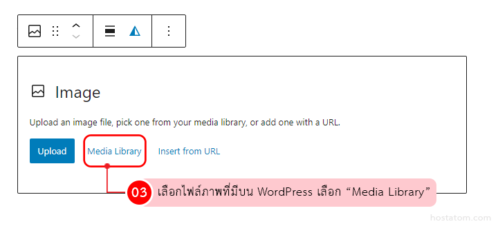 - Media Library: เลือกรูปภาพที่มีอยู่ใน Media Library ของ WordPress