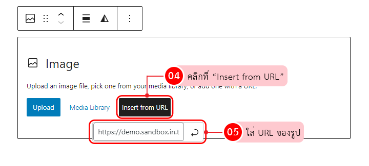 - Insert From URL: เป็นการเลือกใช้ภาพจากที่อื่น โดยจะเรียกใช้ผ่าน URL