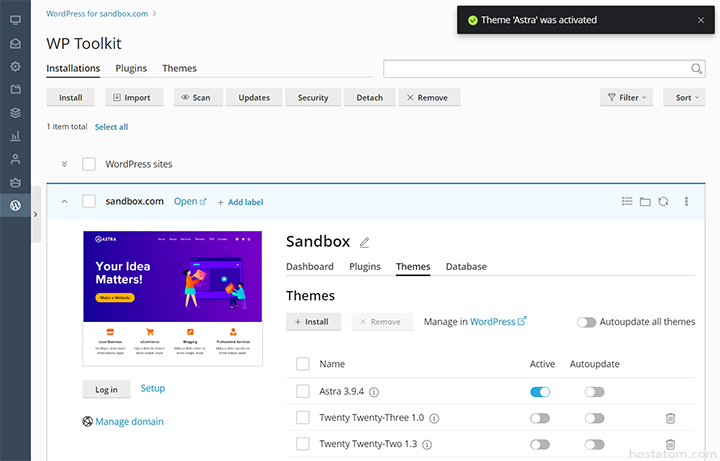 ใน WordPress Toolkit จะมีตัวช่วยให้ผู้ใช้สามารถจัดการกับธีมต่างๆ ให้มีความสะดวกมากขึ้น โดยจะมีเมนูการจัดการธีมต่างๆ ดังนี้