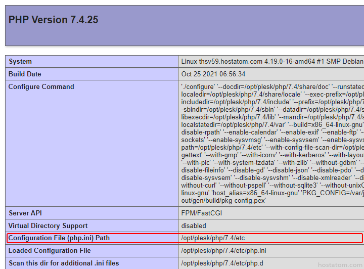ระบบจะแสดงรายละเอียดต่างๆ ของเว็บไซต์ โดยตำแหน่งของ php.ini จะอยู่ที่หัวข้อ Configuration File (php.ini) Path ดังภาพตัวอย่าง