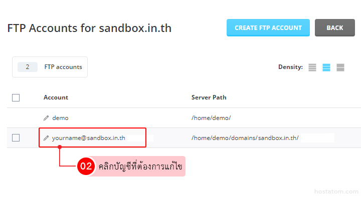 ในกรณีที่ต้องการแก้ไขบัญชีผู้ใช้งาน FTP เช่นหากต้องการแก้ไข Path ที่ต้องการให้เข้าถึง หรือรหัสผ่านบัญชี FTP คุณสามารถทำได้ดังนี้