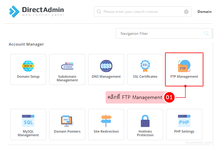 คลิกที่เมนู Account Manager เลือก FTP Management