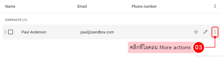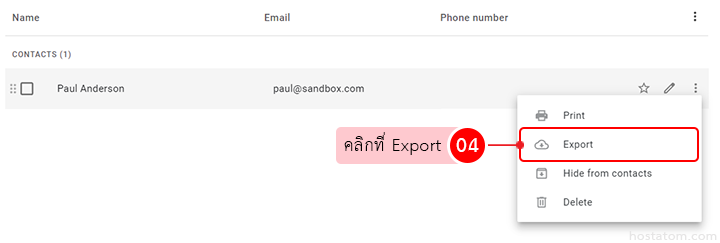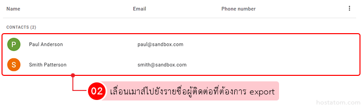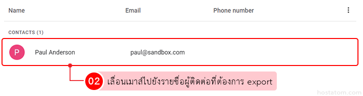 เลื่อนเมาส์ไปยังรายชื่อผู้ติดต่อที่ต้องการ export
