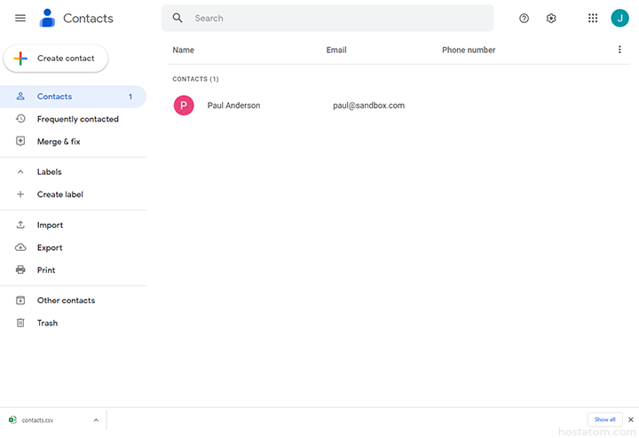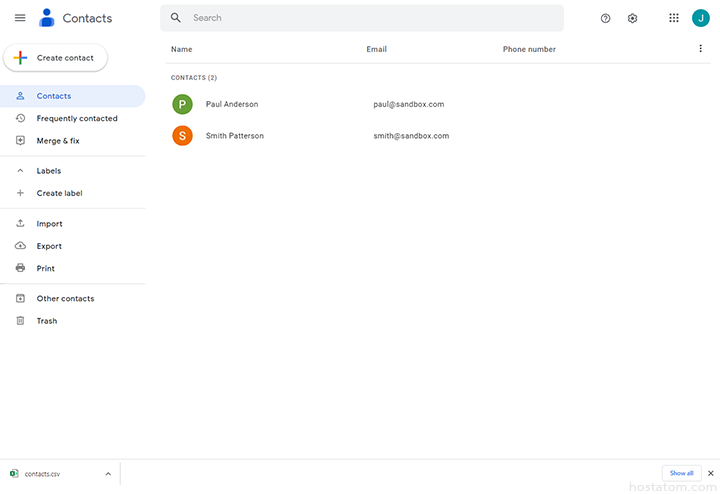 ระบบจะทำการดาวน์โหลดไฟล์ของรายชื่อผู้ติดต่อที่เลือก
