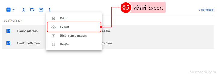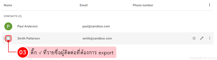 ติ๊กถูกที่รายชื่อผู้ติดต่อที่ต้องการ export