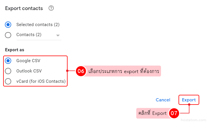ผู้ใช้สามารถ export รายชื่อผู้ติดต่อใน Google Contacts ได้ตามขั้นตอนต่อไปนี้