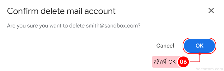 ระบบจะแสดงหน้าต่างยืนยันการลบบัญชีอีเมลที่เลือก ให้คลิกที่ OK