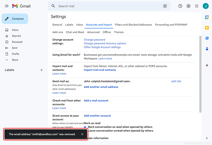 ระบบจะแจ้งว่าได้ลบบัญชีอีเมลดังกล่าวแล้ว