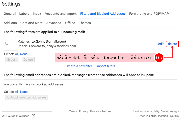 ผู้ใช้สามารถลบการตั้งค่า forward mail ที่ได้สร้างไว้ใน Gmail ได้ตามขั้นตอนต่อไปนี้