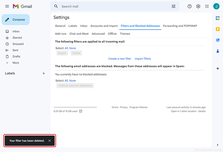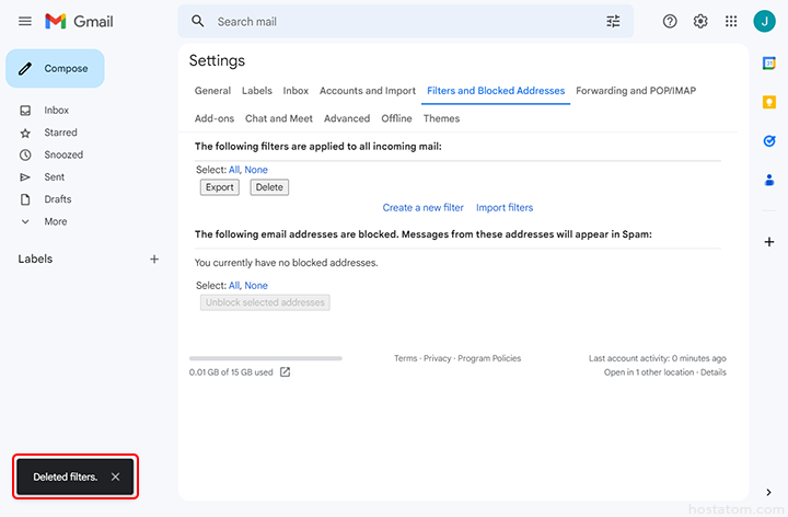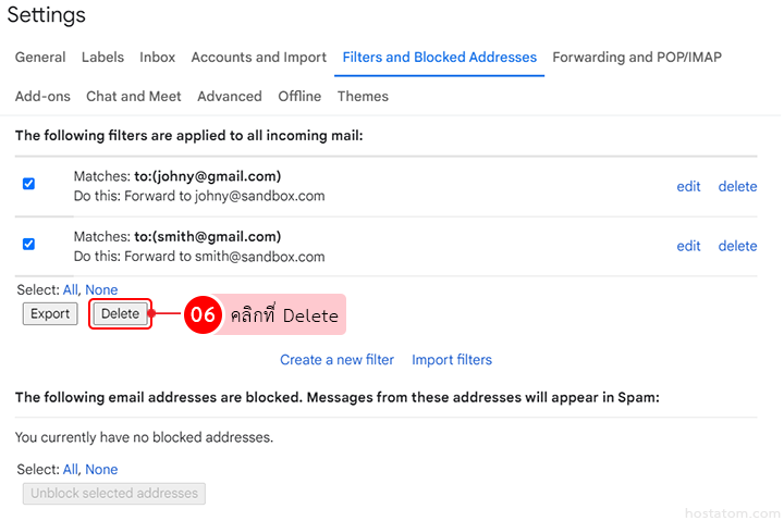 คลิกที่แท็บ Filters and Blocked Addresses