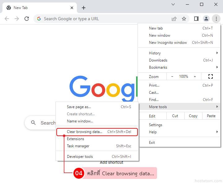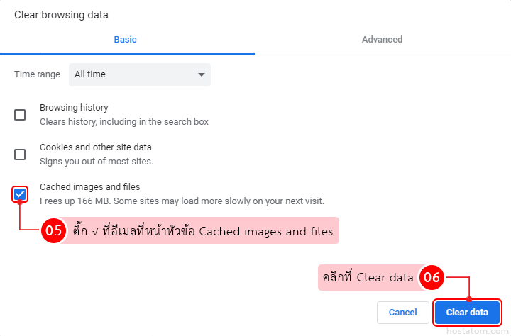 ระบบจะแสดงหน้าต่าง Clear browsing data ขึ้นมาติ๊กถูกที่หน้าหัวข้อ Cached images and files จากนั้นคลิกที่ Clear data