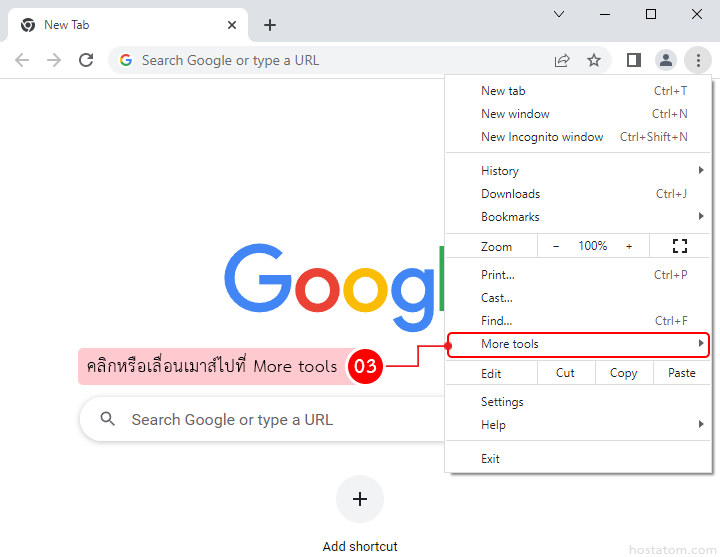 คลิกหรือเลื่อนเมาส์ไปที่ More tools