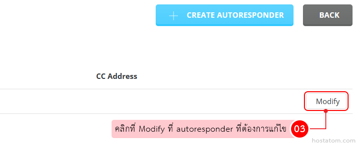 คลิกที่ Modify ที่ autoresponder ที่ต้องการแก้ไข