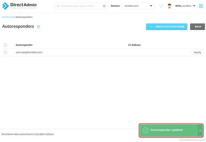 ระบบจะแจ้งว่าได้อัปเดตข้อมูลของ autoresponder ดังกล่าวแล้ว