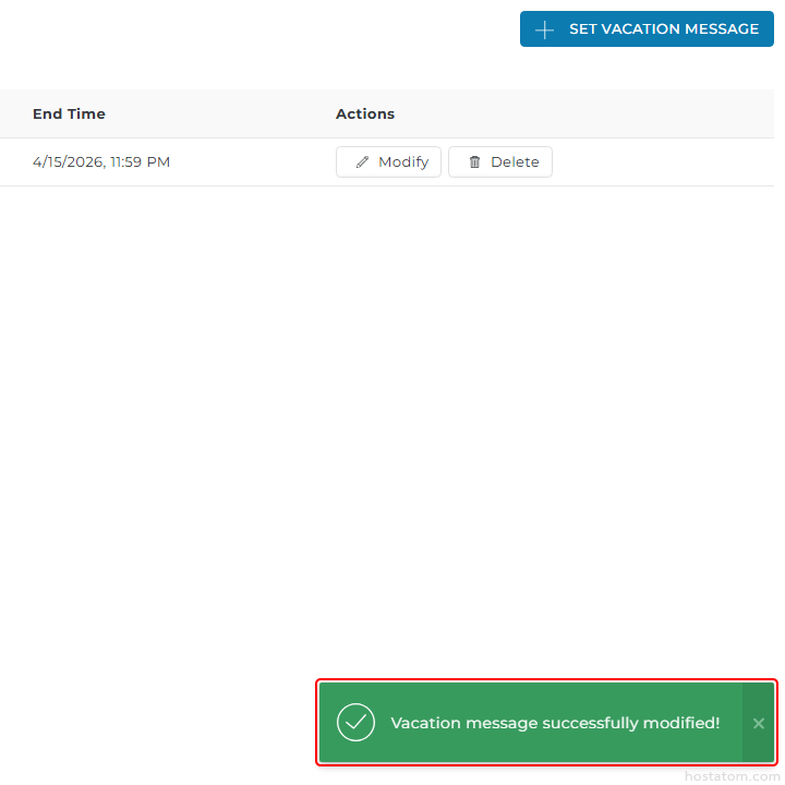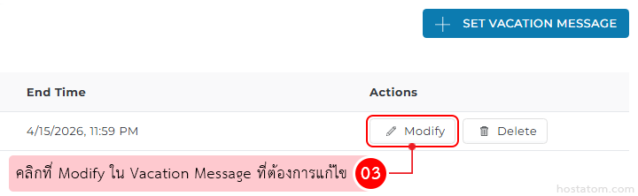คลิกที่ Modify ใน Vacation Message ที่ต้องการแก้ไข
