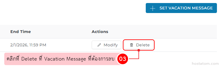 คลิกที่ Delete ที่ Vacation Message ที่ต้องการลบ