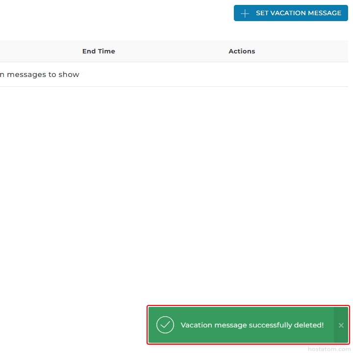 ระบบจะแจ้งว่าได้ลบ Vacation Message ดังกล่าวแล้ว