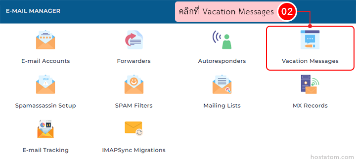 คลิกที่ Vacation Messages ในหมวด E-MAIL MANAGER