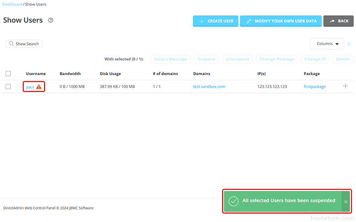 ผู้ใช้สามารถระงับการใช้งานผู้ใช้ที่ได้สร้างไว้ใน control panel ของ DirectAdmin ที่มีปัญหาได้ตามขั้นตอนต่อไปนี้