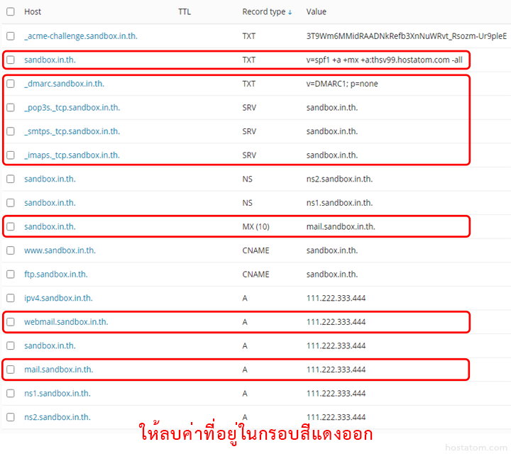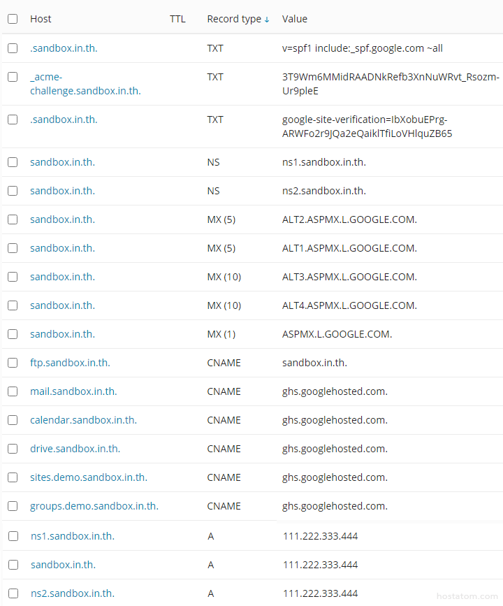 ก่อนที่จะทำการเพิ่ม Record ของ Google ลงไป จะต้องลบค่าอีเมลเดิมออกไปก่อน ซึ่งได้แก่ค่า MX, TXT และ A อย่าง POP, SMTP หรือ Mail เป็นต้น