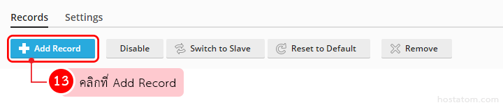 ขั้นตอนการเพิ่ม CNAME มีดังนี้ ให้คลิกที่ปุ่ม ADD RECORD