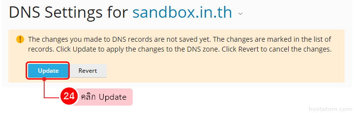 เมื่อเพิ่มทุกค่าครบแล้วให้คลิกที่ Update เพื่อยืืนยันการตั้งค่า DNS