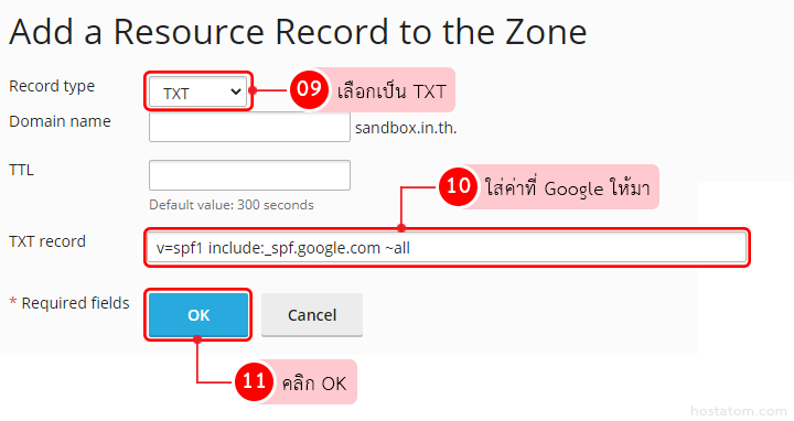 - TXT Record:: ให้ใส่ “v=spf1 include:_spf.google.com ~all”