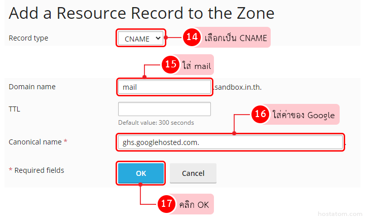 - Canonical name: ให้ใส่ ghs.googlehosted.com.