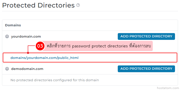 คลิกที่รายการ password protect directories ที่ต้องการลบ