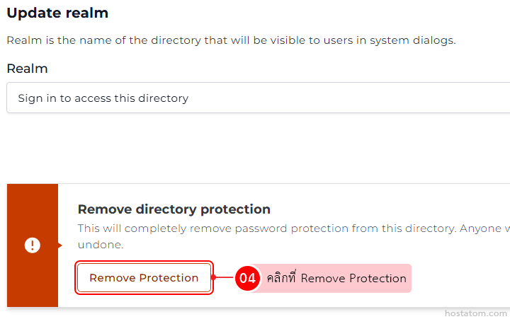 คลิกที่ Remove Protection ในส่วน Remove directory protection