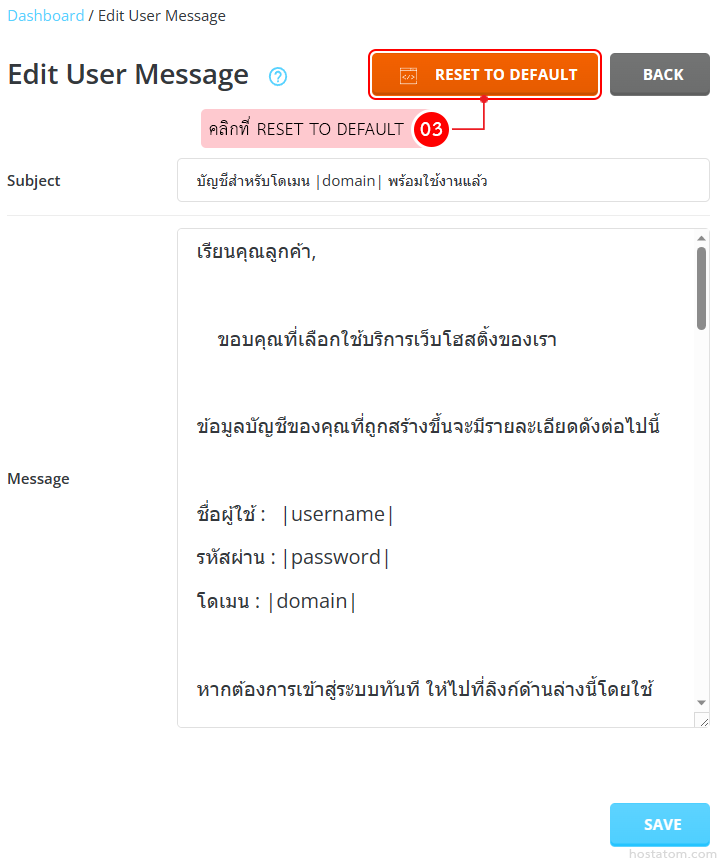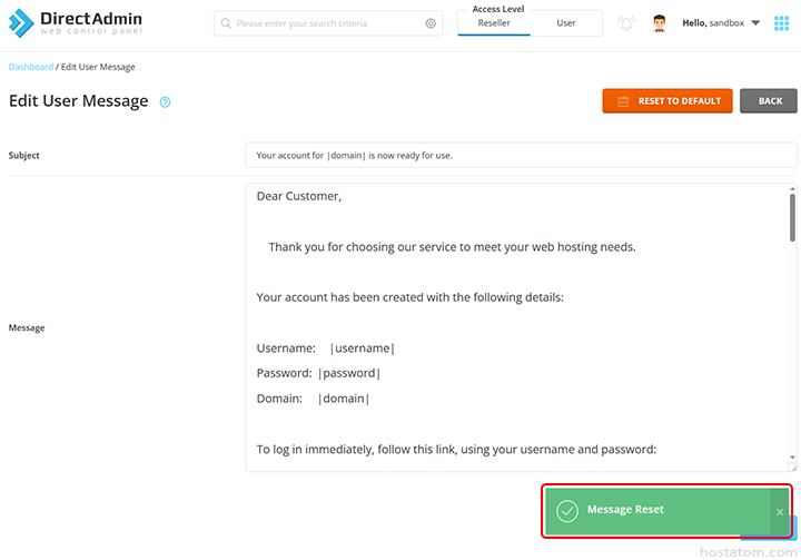 ผู้ใช้สามารถ reset user message ที่ได้แก้ไขไปใน control panel ของ DirectAdmin ได้ตามขั้นตอนต่อไปนี้