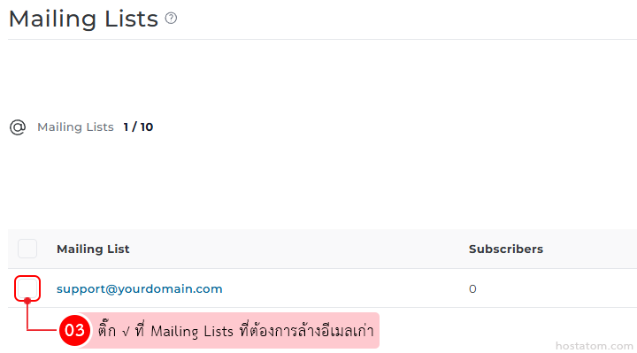 ติ๊ก √ ที่ Mailing Lists ที่ต้องการล้างอีเมลเก่า