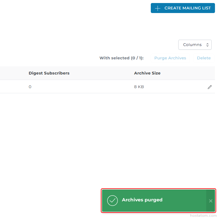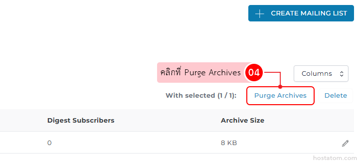 ระบบจะแจ้งว่าได้ล้างอีเมลเก่าออกจาก Mailing List แล้ว โดยระบบจะลบอีเมลที่เก่ากว่าจำนวนวันที่กำหนดออกจาก Archive