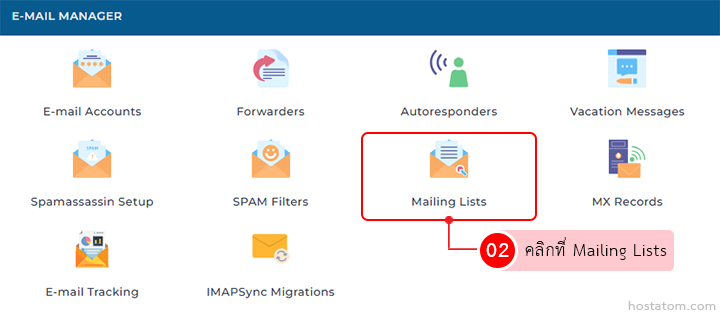 คลิกที่ Mailing Lists ในหมวด E-mail Manager