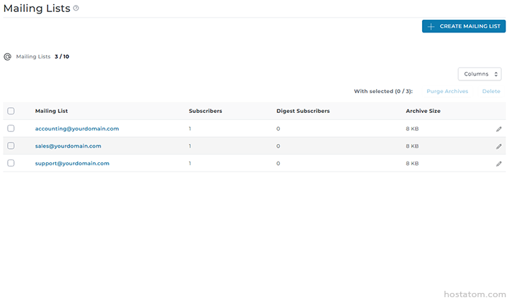 ระบบจะแสดงรายการ mailing list ที่ได้สร้างไว้ ดังรูปตัวอย่าง