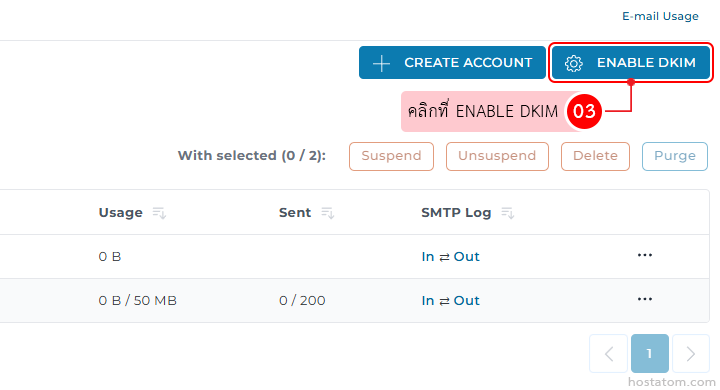 ใน DirectAdmin ผู้ใช้งานสามารถเปิดหรือปิดการใช้งาน DKIM สำหรับบัญชีอีเมลได้ด้วยตนเองตามขั้นตอนต่อไปนี้