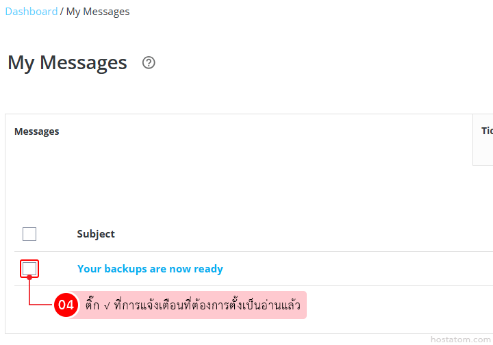 ติ๊กถูกที่หน้าการแจ้งเตือนที่ต้องการตั้งเป็นอ่านแล้ว