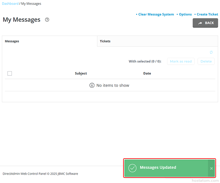 ผู้ใช้สามารถตั้งการแจ้งเตือนที่ได้รับใน control panel ของ DirectAdmin เป็นอ่านแล้วได้ตามขั้นตอนต่อไปนี้