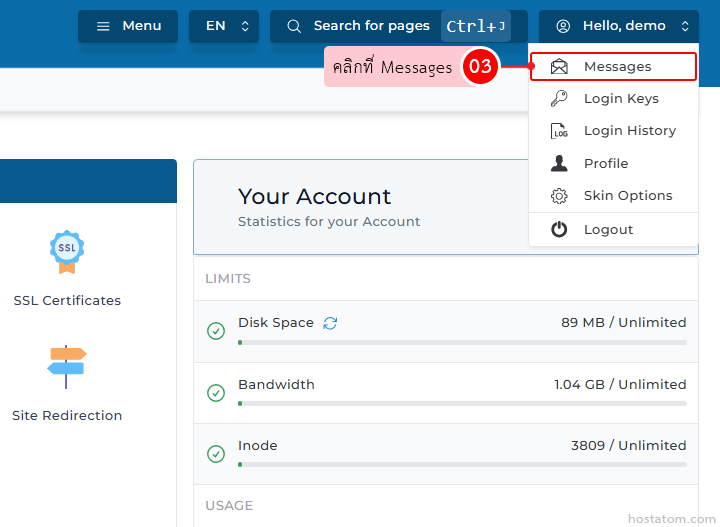 เริ่มจาก login เข้าใช้งาน DirectAdmin