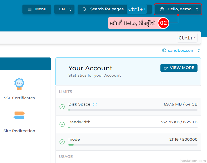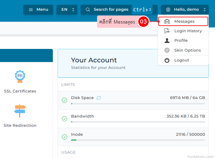 เริ่มจาก login เข้าใช้งาน DirectAdmin