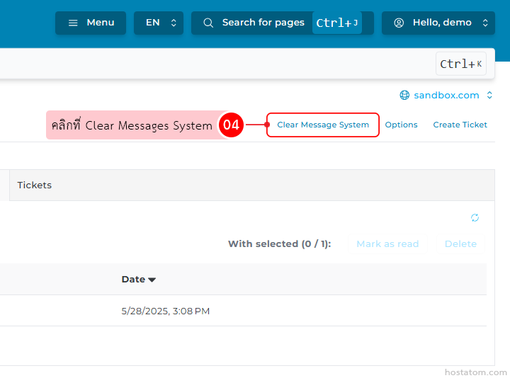 คลิกที่ Clear Message System