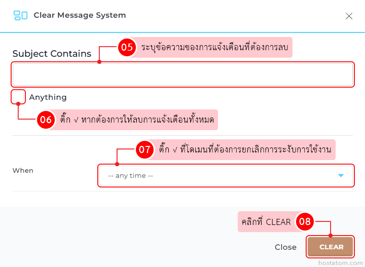 กำหนดรายละเอียดการล้างการแจ้งเตือนที่ต้องการ เมื่อเสร็จแล้วให้คลิกที่ CLEAR