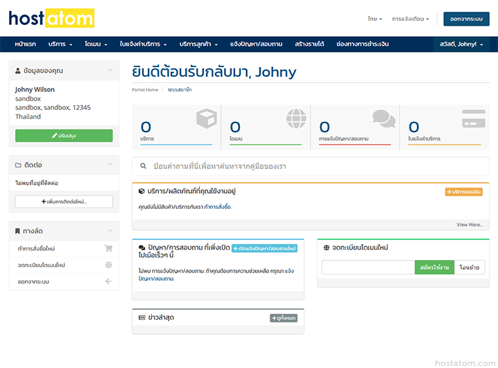 ระบบจะพามาที่หน้าหลักของส่วนบริการลูกค้าของ hostatom